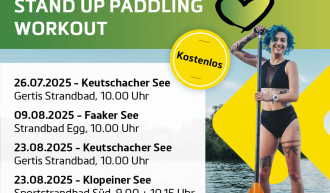 Das Land Kärnten bietet in Kooperation mit der „Gesunden Gemeinde“ Keutschach am See einen kostenlosen „Stand up Paddling“-Kurs an. Stand Up Paddling schont die Gelenke, erhöht gleichzeitig die Ausdauer und verbessert das Gleichgewichtsvermögen. Zudem werden durch die frische Luft und das Element Wasser auch der Geist und die Seele belebt. Das Workout umfasst 60 Minuten und ist für die Teilnehmer:innen kostenlos. Maximal 12 Personen können am jeweiligen Training teilnehmen, dabei g…