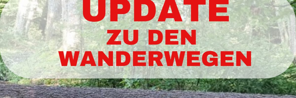 Wanderwege sind nach wie vor nach den Unwettern schwer zugänglich, da viele Bäume gefährlich über die Wege liegen. Das Betreten der Wanderwege sollte vermieden werden!