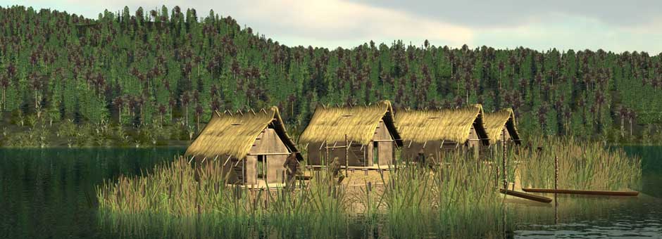 Über das Aussehen der Pfahlbausiedlung wissen wir noch sehr wenig. Die Fläche der